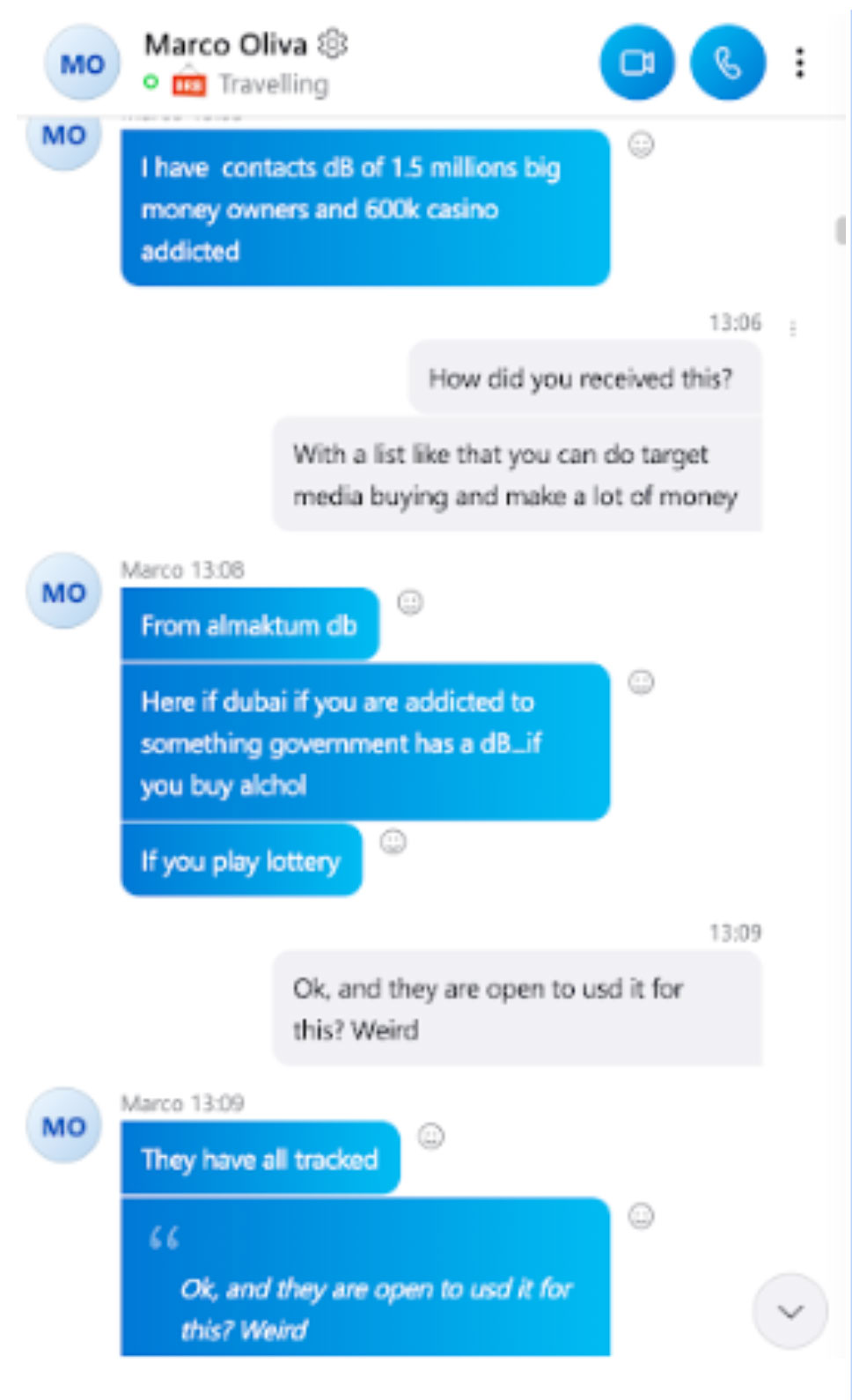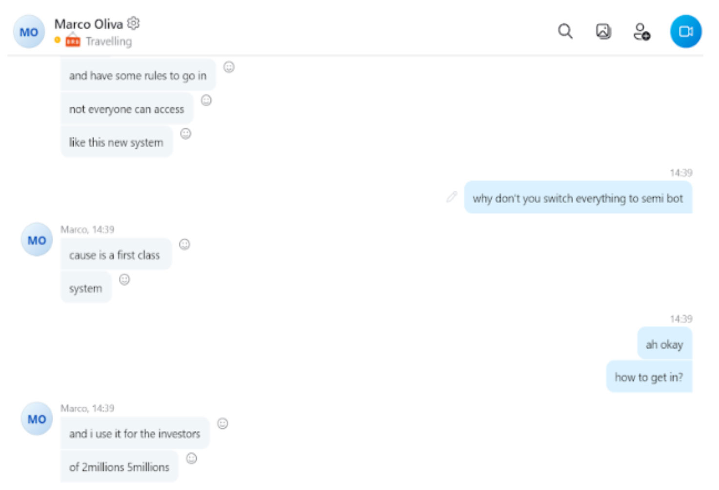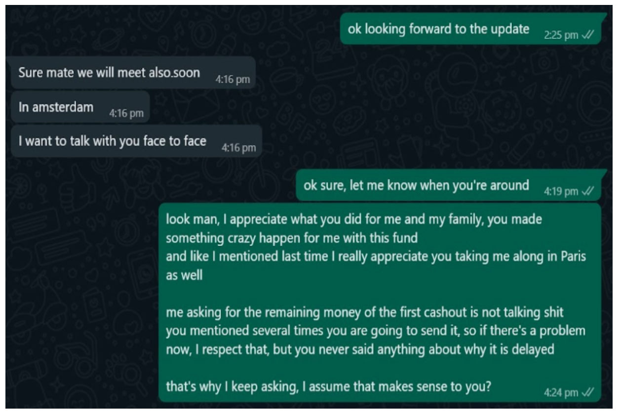 We managed to get hold of some transcripts of various conversations that some of the investors had with Marco either before or after parting with their funds. These were either on whatsapp, skype or email.