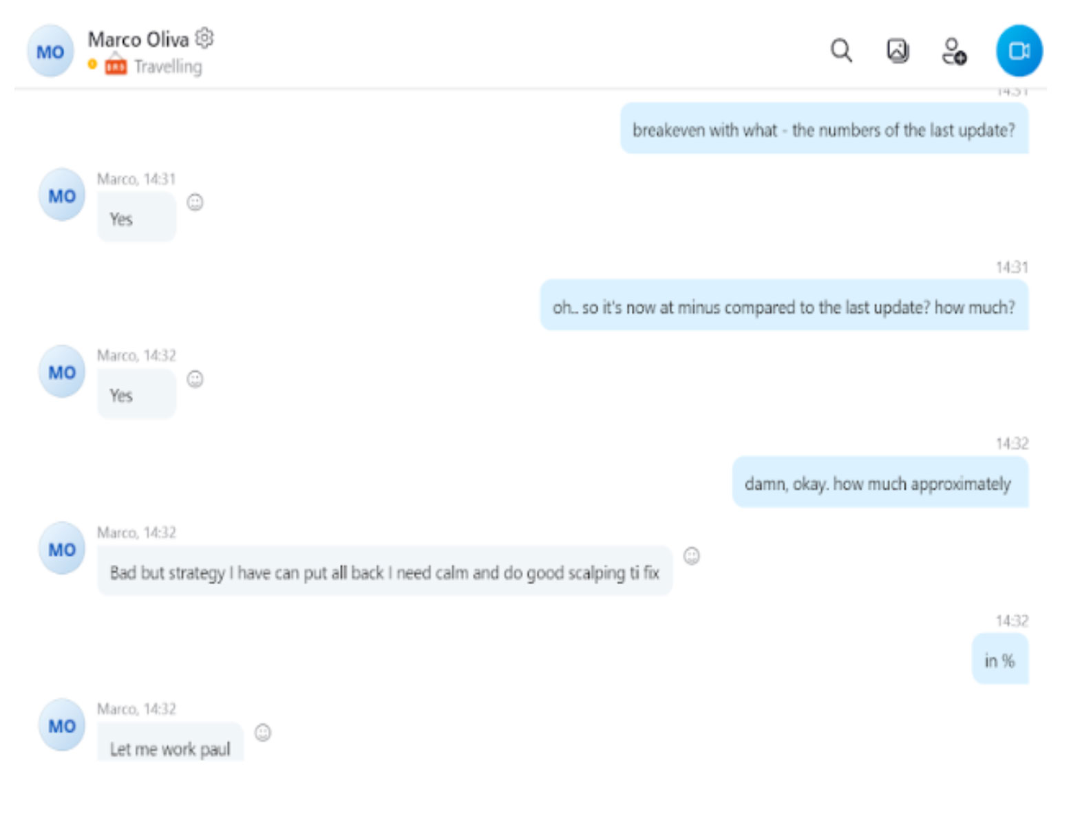 Voice note with Marco’s response when asked to cash out a position